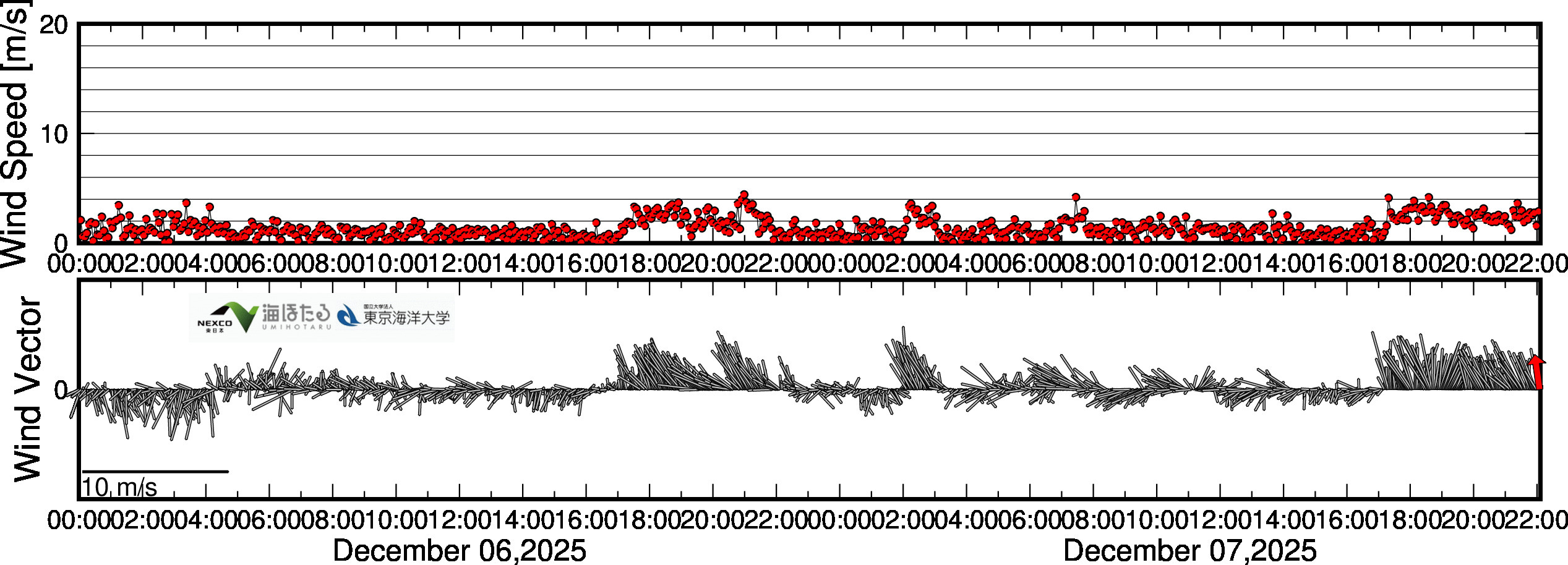 | 絶対風速 (upper) & 風速ベクトル (lower) | |
